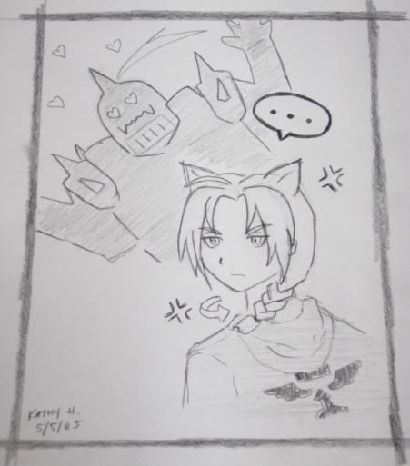And again, like the FMA one, its not complete. I somewhat like it. I can see all the spots that need work on (i.e. her left eyebrow, the lips, need to actually draw the shouldars and clothes in, blah blah blah), which frustrates me until I remember, ITS A ROUGH DRAFT IT DOESN'T HAVE TO BE PERFECT. So then I can relax. Phew, now I remember why I stopped drawing in the first place (getting frustrated by uncompleted work, and because I had to work on projects I didn't want to for class.)